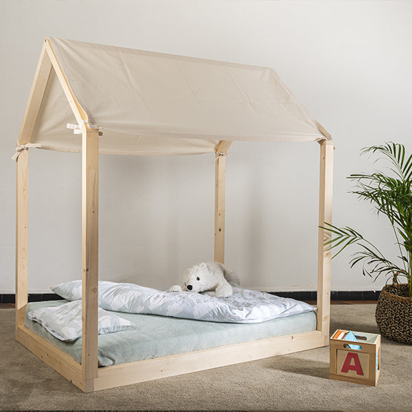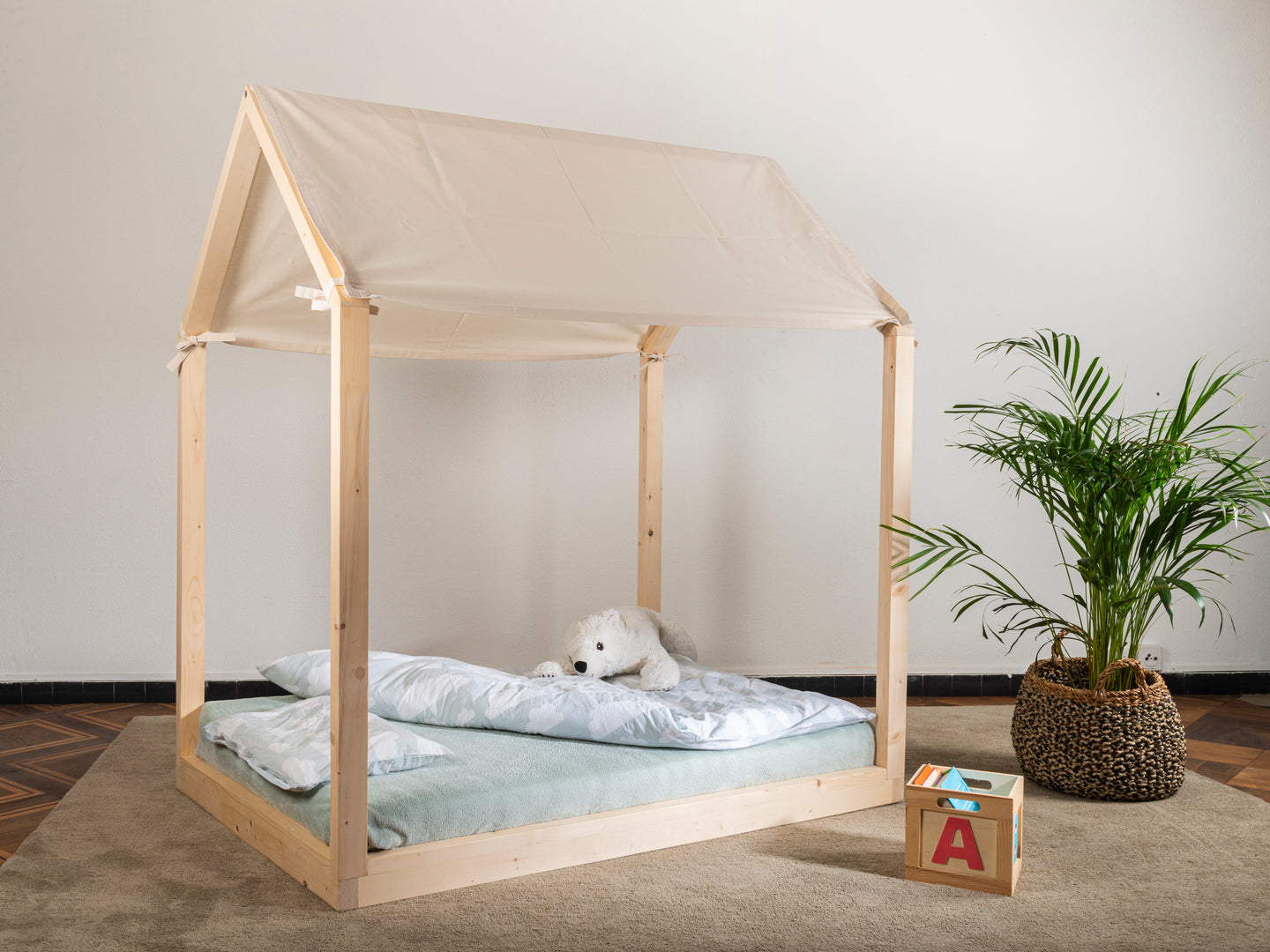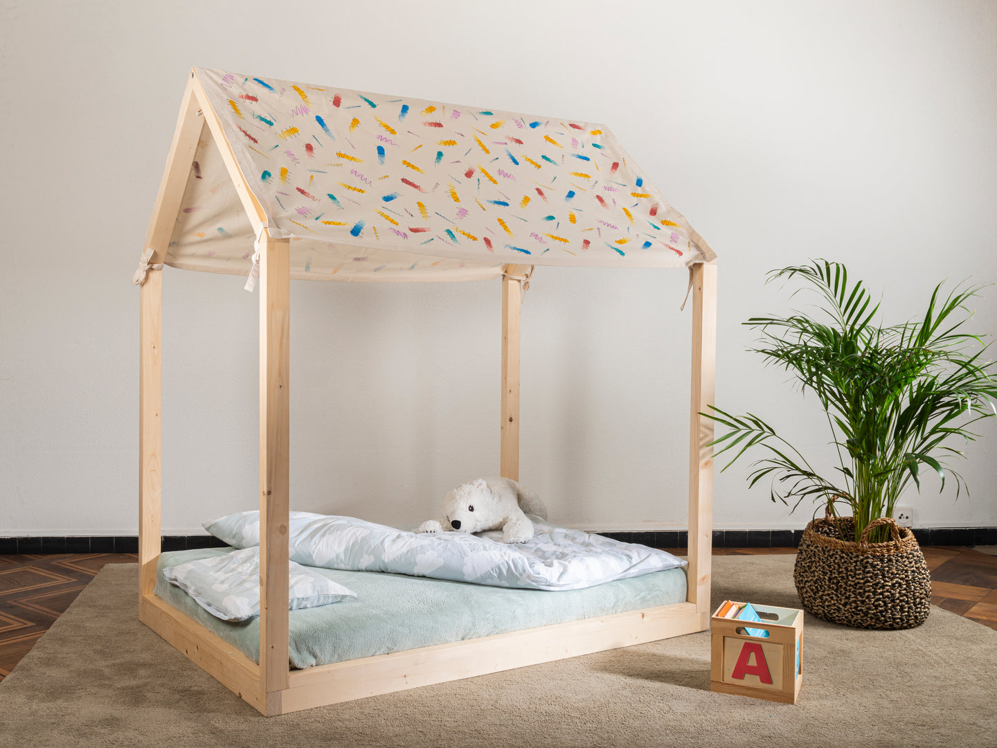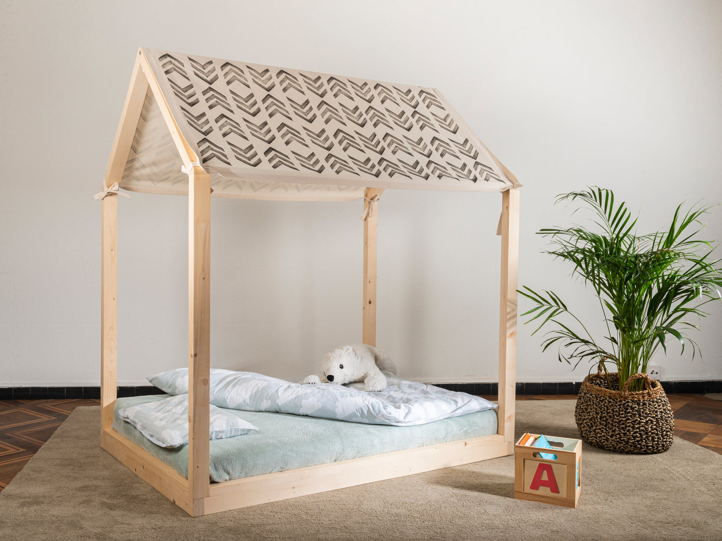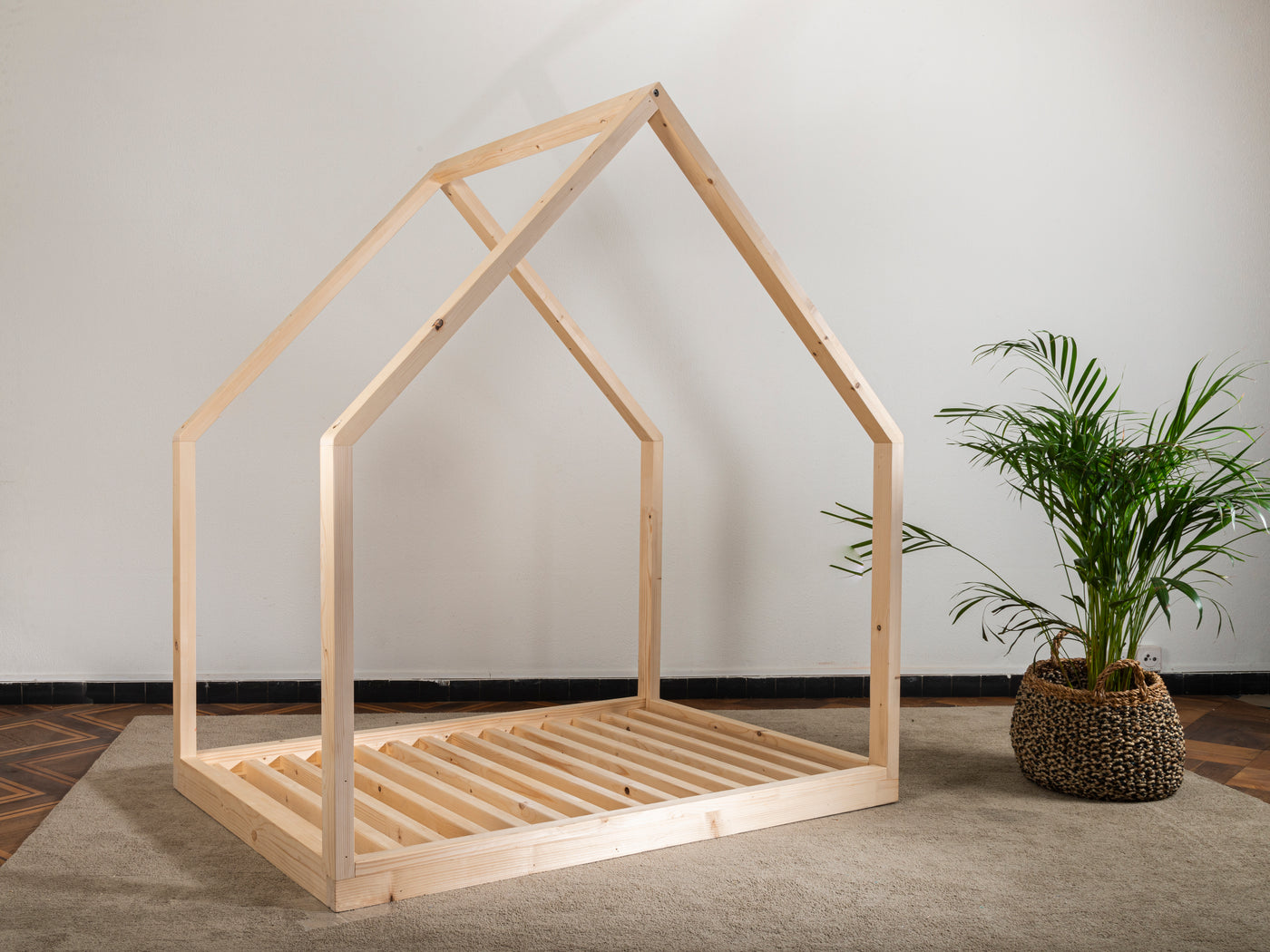 En forme de maisonnette, ce design simple pourra faire office de place de jeu ou de lit en y alliant tout le confort et décor à sa guise.