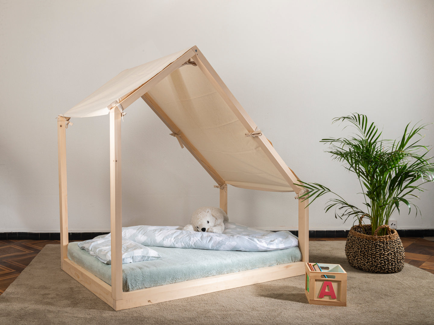 En forme de maisonnette, ce design simple pourra faire office de place de jeu ou de lit en y alliant tout le confort et décor à sa guise.