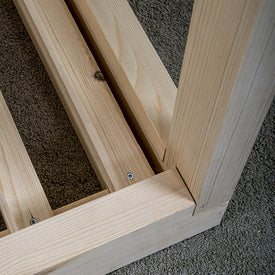 Sans colle, ce sont des vis non apparentes qui vous sont fournies, avec une clé imbus. Les axes des lits ont été soigneusement rabotés et poncés.